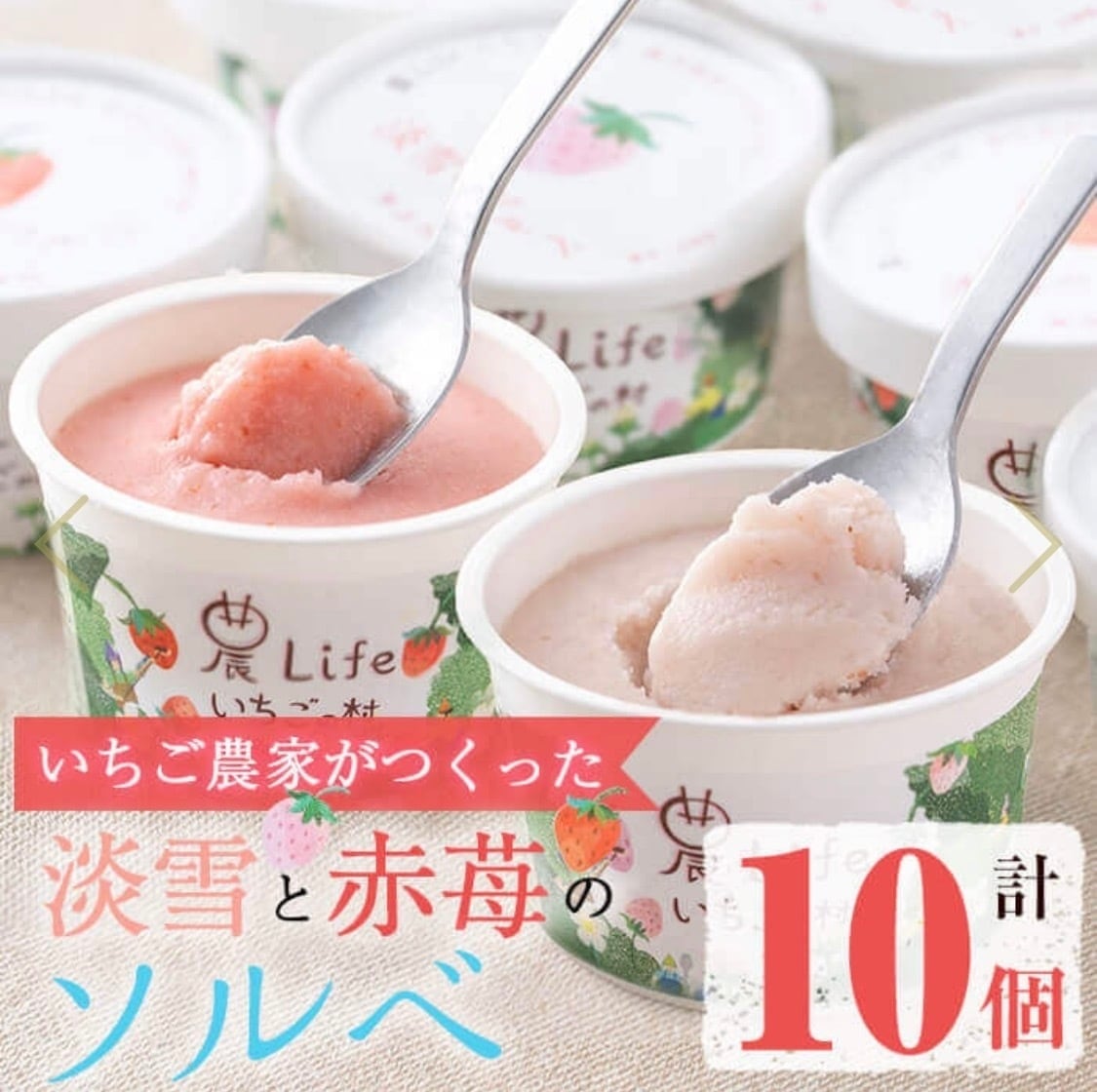 ■ 完熟赤いちごソルベ5個と白いちごソルベ5個の2種セット